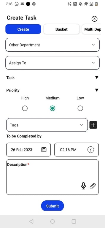 4. Notify To - If you want to inform a Third Person who is neither the Assignee nor the Task Creator. The Third person will get a Notification when the Task is completed.