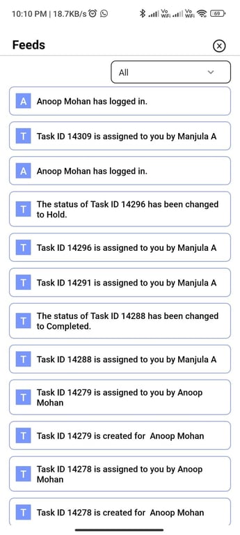5. Feeds on all Activities by the user (Mobile App)