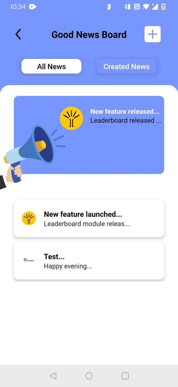 1. Good News Board - Exclusive Good News Board - To Update the Good News Across the Organization. News Can be Updated by Admin & Department Head. Team can Like & comment.